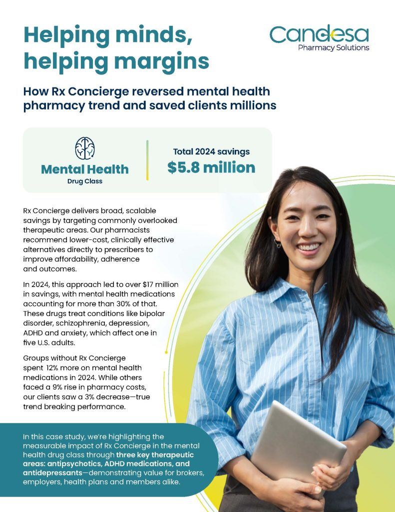 In this case study, we’re highlighting the measurable impact of Rx Concierge in the mental health drug class through three key therapeutic areas: antipsychotics, ADHD medications, and antidepressants—demonstrating value for brokers, employers, health plans and members alike.